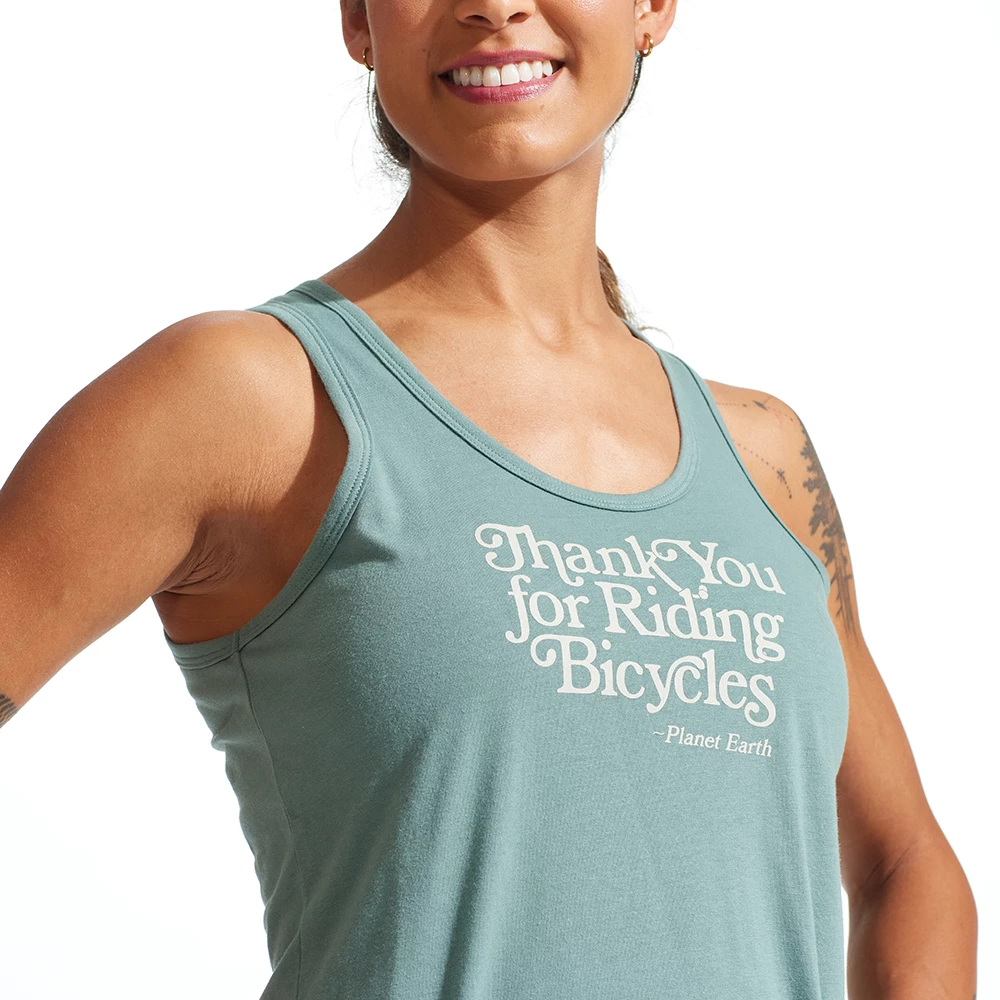 Summer casual, with a feminine fit and slightly lower rear hem for just enough coverage while riding, this tank is created with bike lovers in mind. It’ made with 60% BCI Cotton and 40% recycled polyester, for a soft performance feel and sustainable integrity. The rich colors and simple graphics reflect your passion, even when simply lounging around.